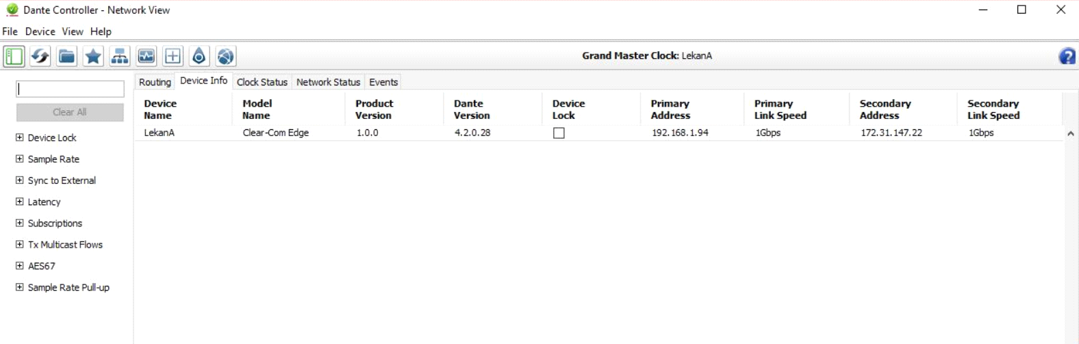 To configure Dante you must be familiar with the Audinate Dante Controller, available from the Audinate website.