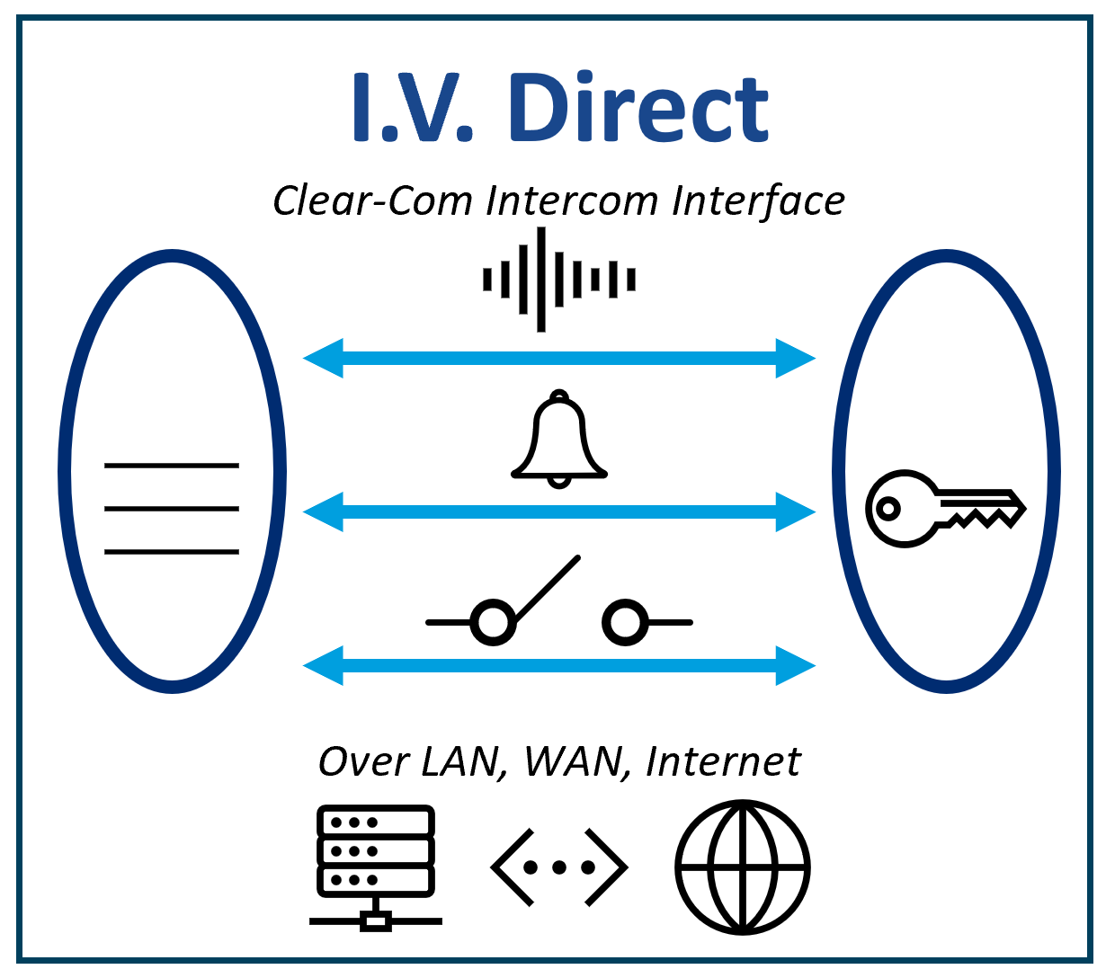 I.V. Direct/IVC Direct ports enable a variety of IP connections to Clear-Com products, and maybe be used, for example, for: