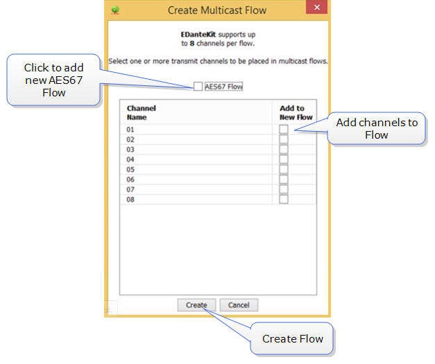 Note: Each flow can contain up to 8 channels. You can create as many flows as you need, depending on the channel capacity of your device.