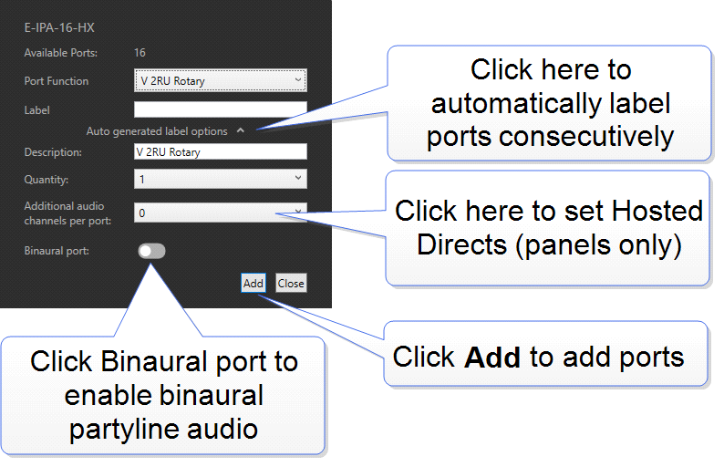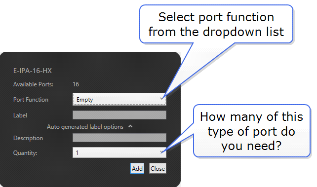 | Note: | If you are adding more than one port, you can enter values in the Characters to Replace and Seed value fields to automatically generate labels. For example, if you enter Label 0 in the Label field, and then enter 0 in the Characters to replace and Seed value fields, this will automatically generate labels called Label 1, Label 2, Label 3 up to the specified number of labels. |