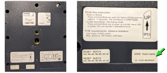 You can find the transceiver mDNS name on the rear of the device. |