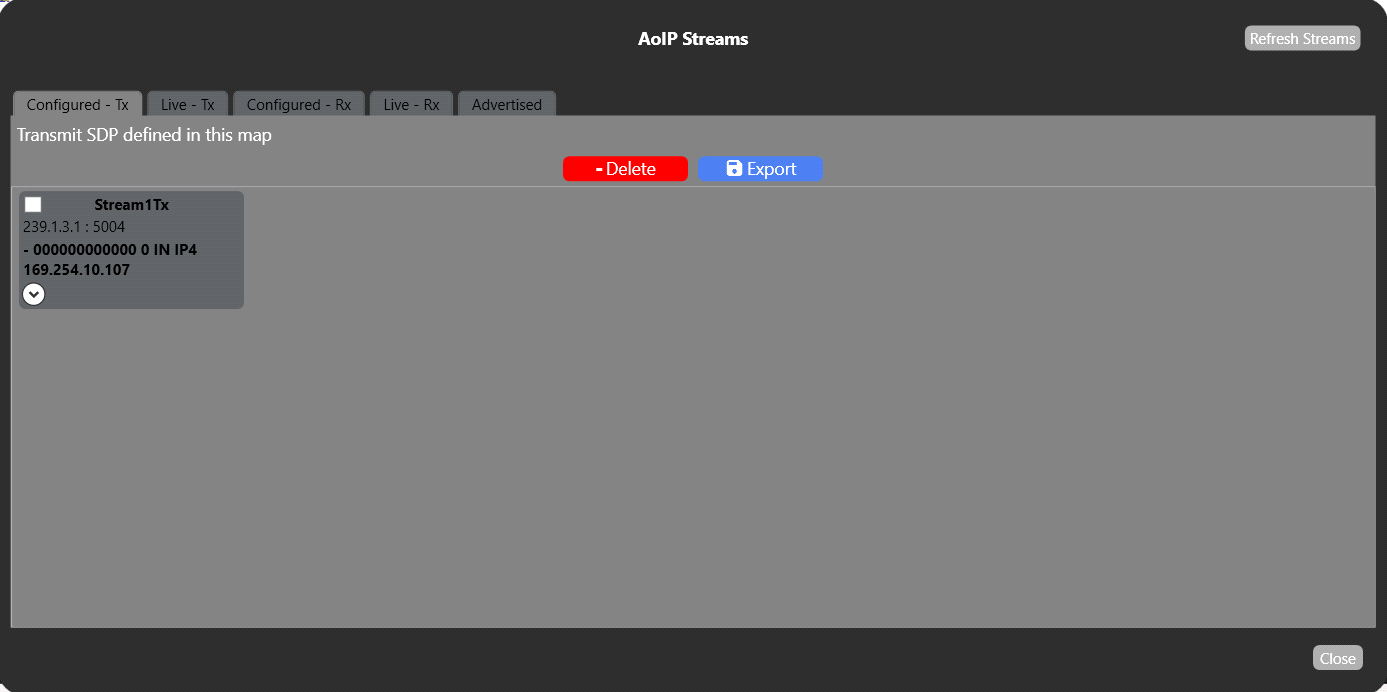 The SDP viewer can be used to check streams and channels coming into and being transmitted out from your matrix. You can also copy SDP files here, and pull Rx streams into your matrix configuration.