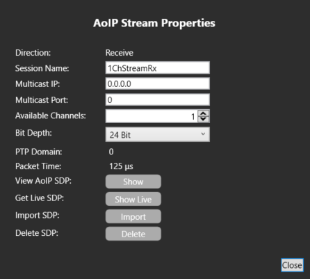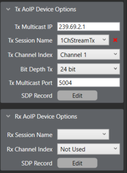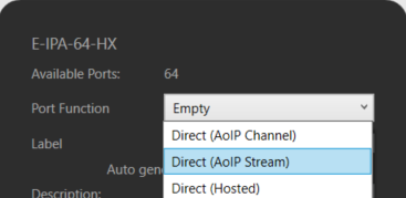 On the Rx side, the option is the same as would be seen in a Direct (AoIP Channel) port: