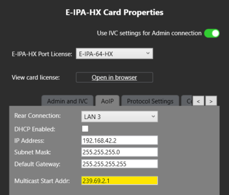 There is a multicast address, which is automatically populated based on the multicast start address found in the IPA card properties: