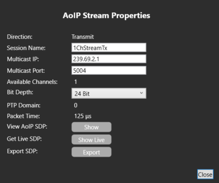 Because this port is a Stream, there is Tx stream configuration. This is the main difference between the two Direct (AoIP) port types.