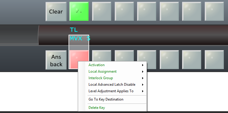 To display the action menu for a key, position the pointer over the label and right-click the mouse.