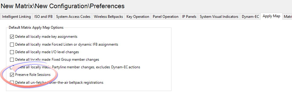 See Preferences > Apply Mapin the EHX configuration software for the option to log out role sessions when the map is applied to the matrix.