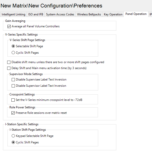 These settings enable you to determine whether I-station shift pages are selectable from the keypad or cyclic.
