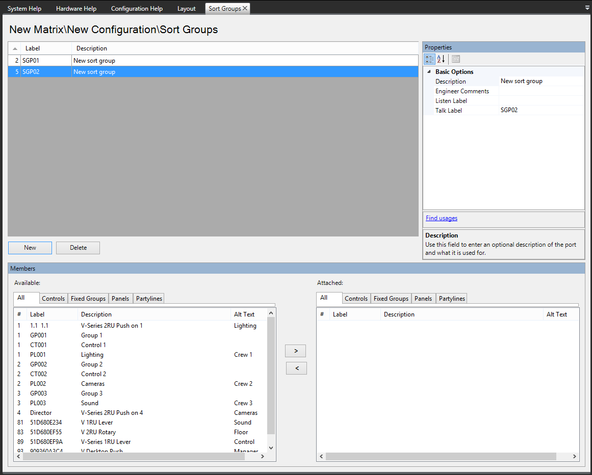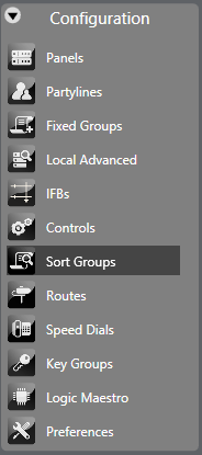 Select Configuration > Sort Groups. This opens the Sort Groups configuration screen.