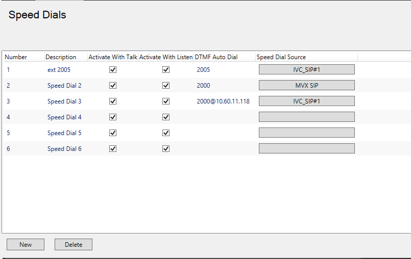 To add a new speed dial, click New at the bottom left of the speed dial window. A new speed dial entry is created with the default description highlighted.