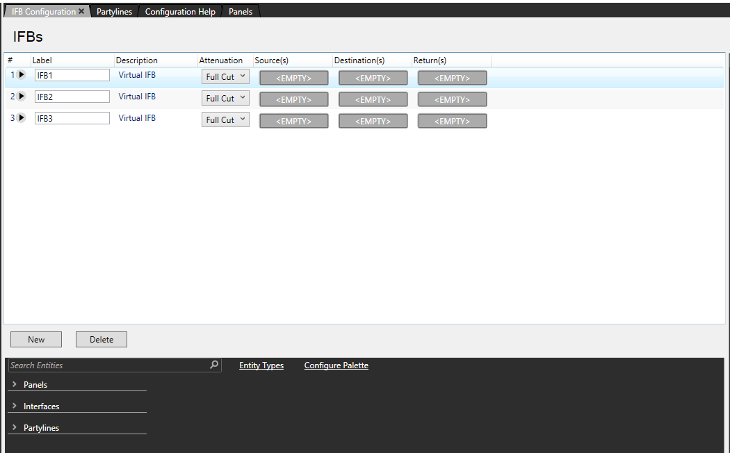 Any IFBs already configured in the system are displayed in a grid with the following information: