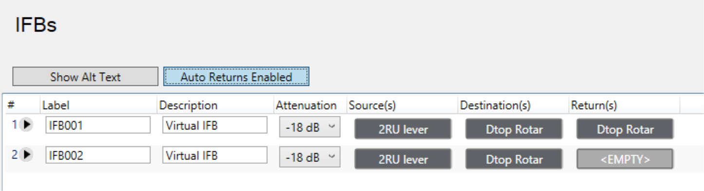 Auto Returns Enabled/Disabled – When enabled, automatically adds or removes IFB returns when IFB destinations are added or removed.