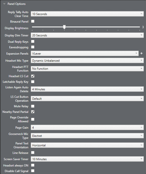 Panel: Dynamic Balanced, Dynamic Unbalanced (default) and Electret. This setting applies to headsets 1 and 2 on panels that support multiple headsets