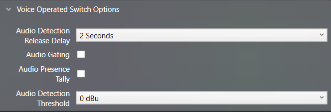 Four settings are available under Port Properties > Voice Operated Switch. These settings determine how the audio gate operates.
