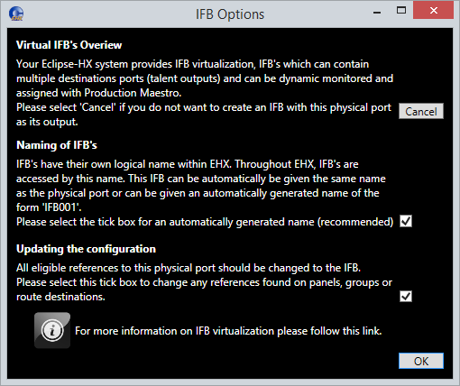 Choose to have an automatically generated name for the IFB (recommended).