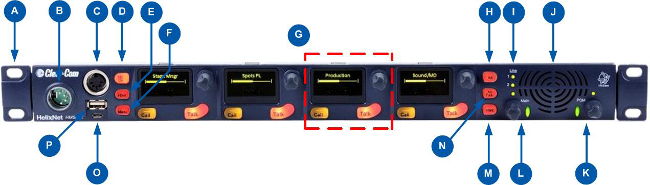 Stage Announce [SA]. Press to talk to connected Public Address (PA) / Stage Announce (SA) system, See HMS-4X Main Station: rear panel