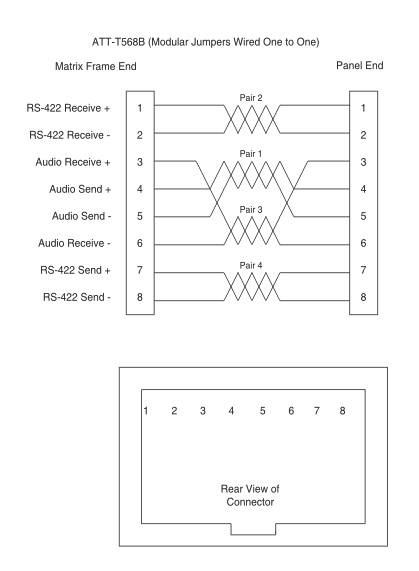 - Pair 4 transmits RS-422 data from the matrix port back to the panel.