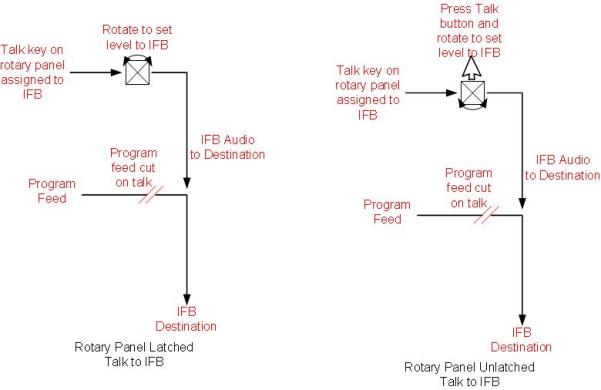 If you latch the call to the IFB destination by momentarily pressing the talk button, you can adjust the level of the audio sent to the IFB destination by turning the rotary control.