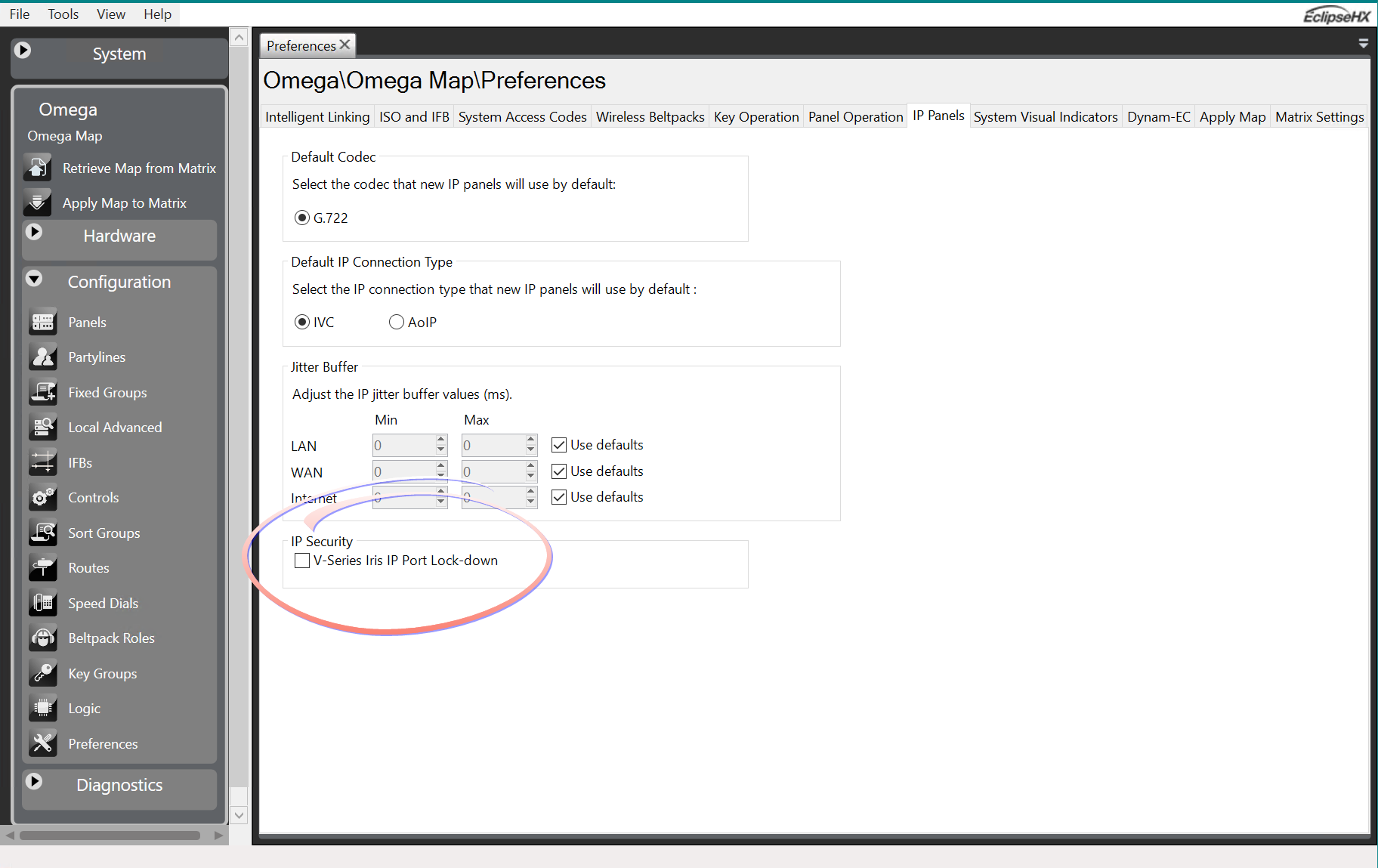 This is a security feature that allows you to lock down all IP ports on panels that are not essential for audio transmission. IP port lockdown can be enabled in EHX system Preferences. Once enabled, all the panels connected to a matrix have inessential IP ports blocked. A single panel can be unlocked from it's front panel menu, but as long as IP security is enabled in system preferences, the ports will be blocked again when the panel is rebooted and reconnects to the matrix.