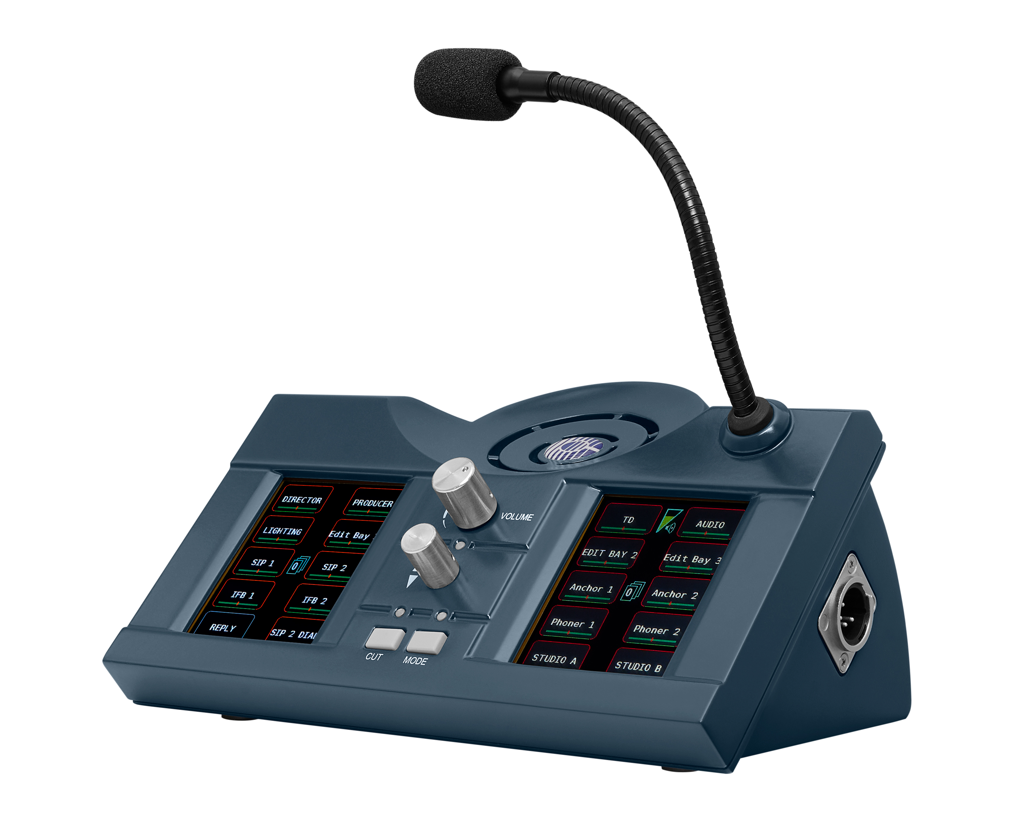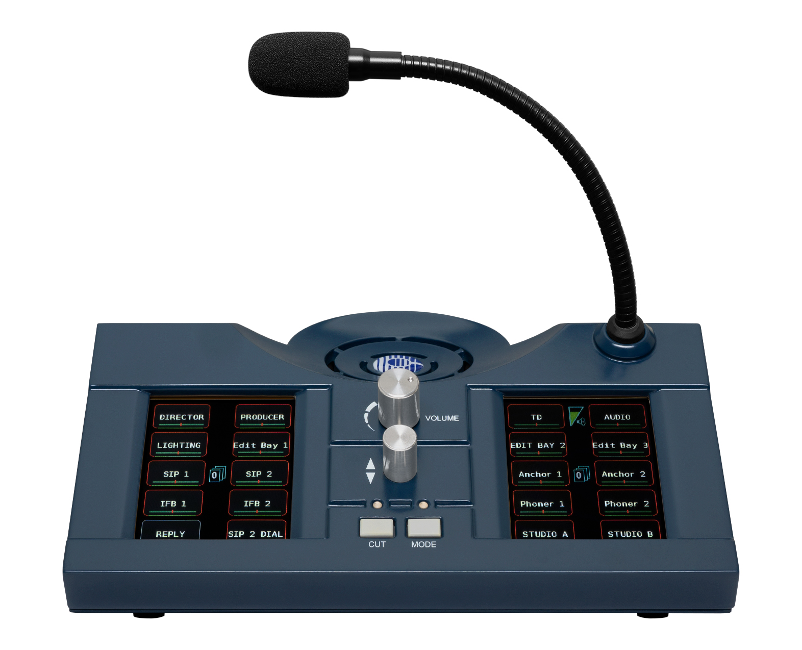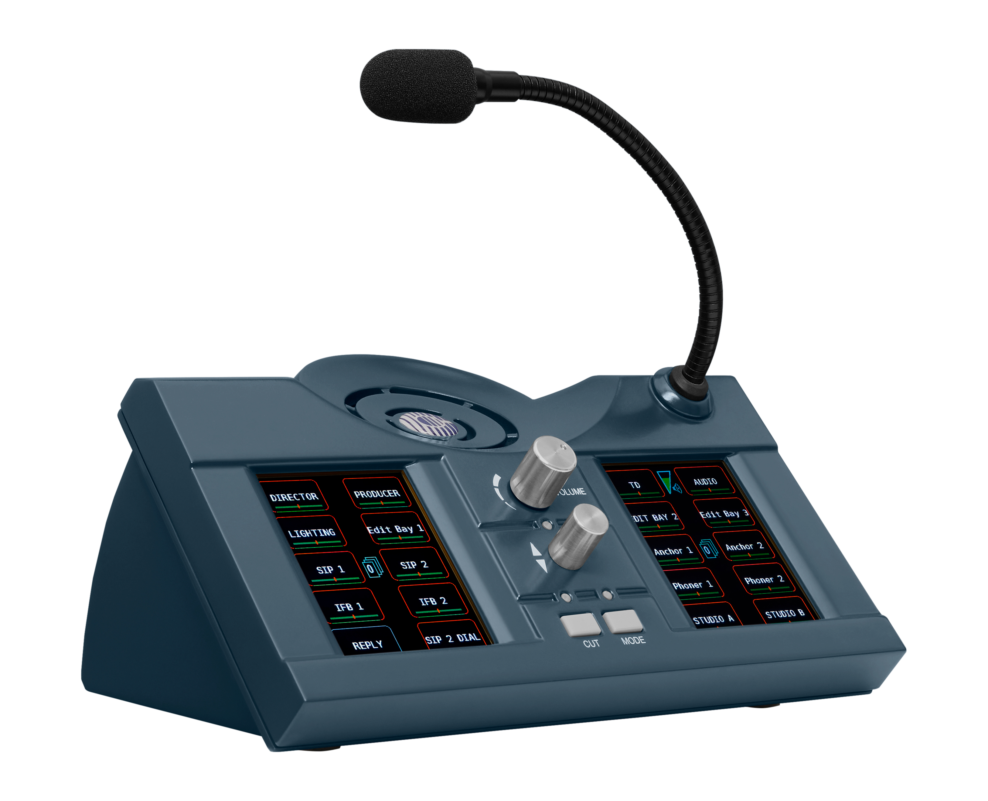 The 20-key IP Desktop Touchscreen panel is a user control panel that allows subscribers to access the Mercury IP network when used in conjunction with Trilogy’s Mercury Interface Unit (MIU) or a Gemini intercom matrix. The panel has 20 touch keys, 8-character alpha-numeric displays, a gooseneck microphone, a headset connector, and a built-in speaker.