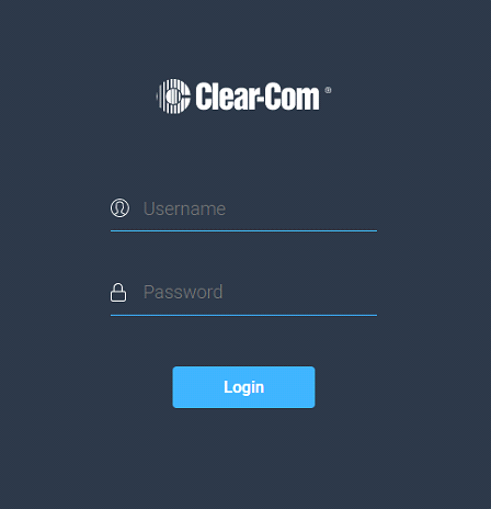- In the browser address field, enter the IP address of the Arcadia Station. You can find this from the front panel menus, see Introduction to Configuring from the Front Panel. The login screen appears: