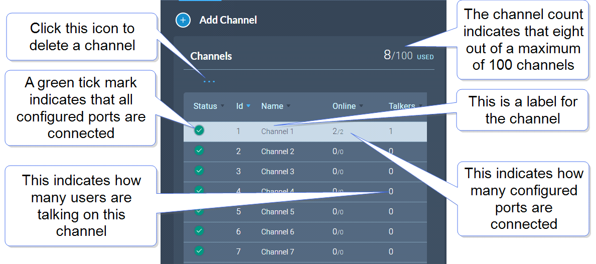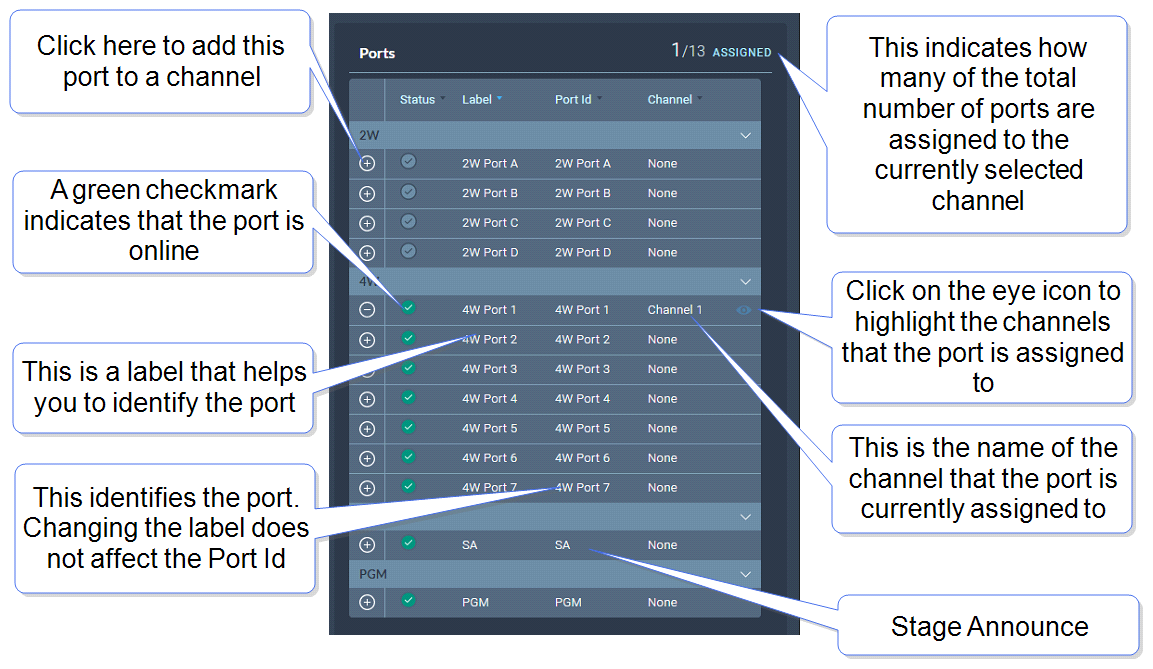 • View existing ports, and add or remove ports from the channel.