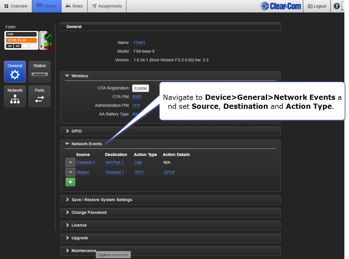 When using FreeSpeak II, Control Events are used to trigger an event on an action (usually a crosspoint).