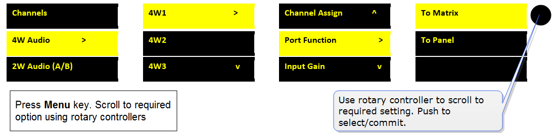 When connecting one FreeSpeak II Base to another FreeSpeak II Base, one device must be set ‘To Matrix’ and the other ‘To Panel’.