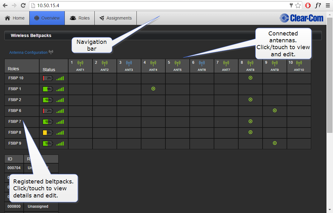 - Up to 25 wireless beltpacks,10 antenna/transceivers per base
