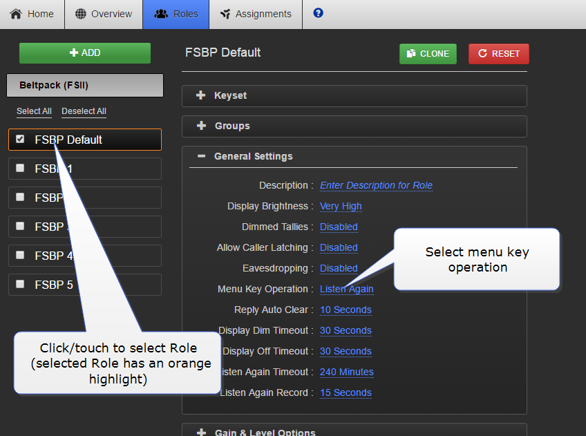 This feature can be set under Roles in the CCM, from the Base Station front menus and from the beltpack itself (advanced menu options).