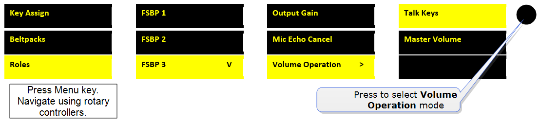 In addition to the Volume Operation control feature, you can set the beltpack menu button to adjust how the volume controls work.