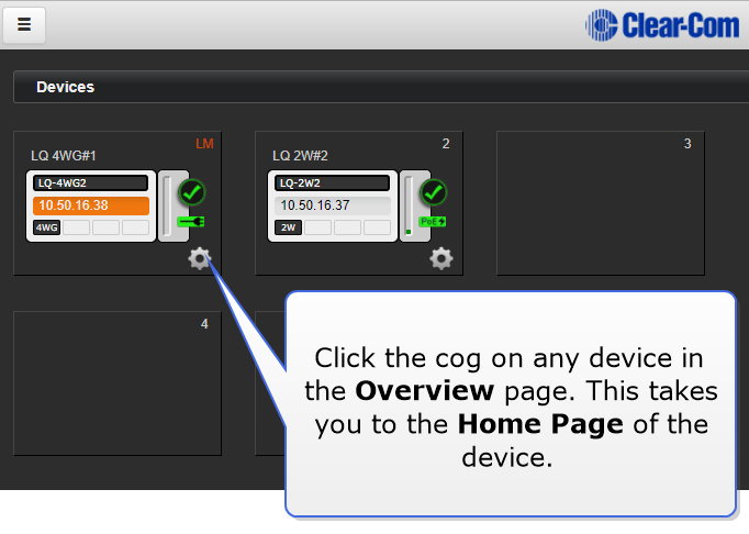 | Note: | When using your own certificate or the EasyDNS certificate, the LQ unit must first be registered with a DNS server. If required, your network administration department should provide advice on this. When using the Clear-Com default certificate, the device does not need to be registered with a DNS server. The Clear-Com default certificate can be used with a set up that does not have Internet access. |