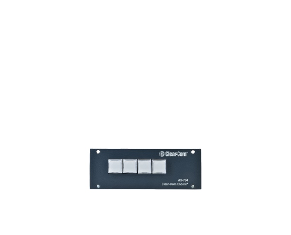 AX-704 (Last Time Buy) 11/2/2017 RELATED NEWS BY PRODUCT ProductsClear-Com Encore Analog Partyline SystemsIFB and CommentatorIFB Solutions RELATED NEWS BY MARKET ProductsClear-Com Encore Analog Partyline SystemsIFB and CommentatorIFB Solutions Expands MA-704 station by four Talent channels Connect multiple expansion panels for up to 96 Talent channels All IFB button simultaneously access all Talent channels Tally lights indicate IFB channels in use Optional rack mount kit for up to 12 talent access buttons in a 1RU Powered by the intercom line
