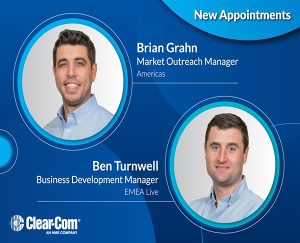 ALAMEDA, USA – April 28, 2026 – Clear-Com® has appointed Brian Grahn as Market Outreach Manager of the Americas and Ben Turnwell as Business Development Manager for EMEA live, expanding their roles as the company continues to strengthen customer engagement across global markets.