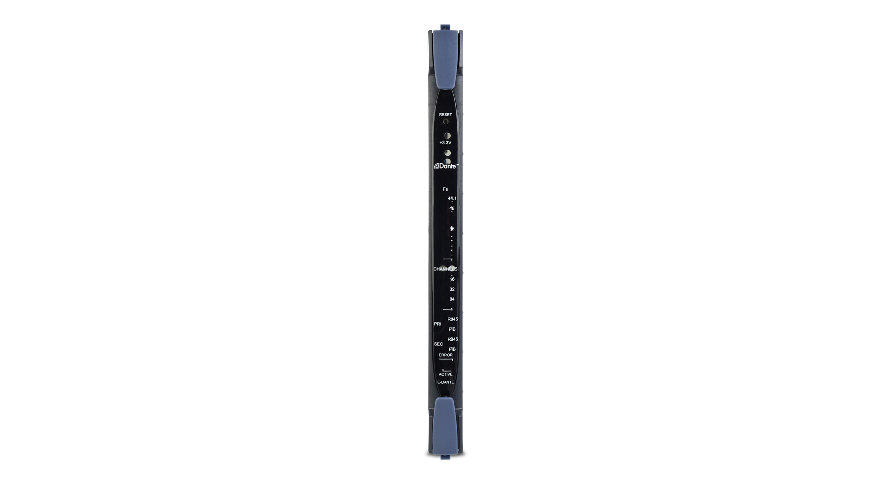 The E-Dante64-HX Interface Card provides Eclipse HX with 16, 32 or 64 channels of low latency, high quality AoIP interconnection. It supports all standard sample frequencies for professional use, including a 96kHz/32-channel option. Other features include: