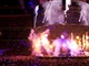 Mathematics plays out on five stages placed around the floor of the venue, usually a stadium: one center stage with a revolving rim allowing 360-degree visibility for (and of) Sheeran, and four platforms for members of his band who - in a first for Sheeran - occasionally accompany him, each at the bottom of six “masts” that act as counterweights in a sophisticated pulley rigging setup for a 42-ton halo above the main stage. As if that wasn’t enough, pyro also figures heavily into the spectacle, with flame throwers used multiple times, culminating with a fireworks display as a finale.
