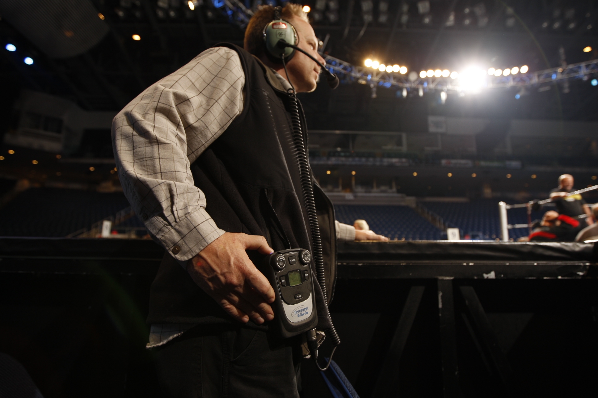 WWE’s lighting crew uses the system most heavily, employing it for tight coordination between set changes. As WWE’s stage shows are large, media-intensive events, the lighting crew is responsible for changing looks during each part of the show and working multiple media servers to support the video elements crucial to the show design and live broadcast. The system also helps ensure that the crew can communicate clearly with other beltstation users and the TV trucks, using an Algebraic Code - Excited Linear Prediction (A-CELP) voice compression algorithm to maintain the highest possible voice audio quality in the midst of extremely loud WWE fans. Further, the system’s iSelect On Command Roaming allows the crew to move easily from one coverage zone to another.