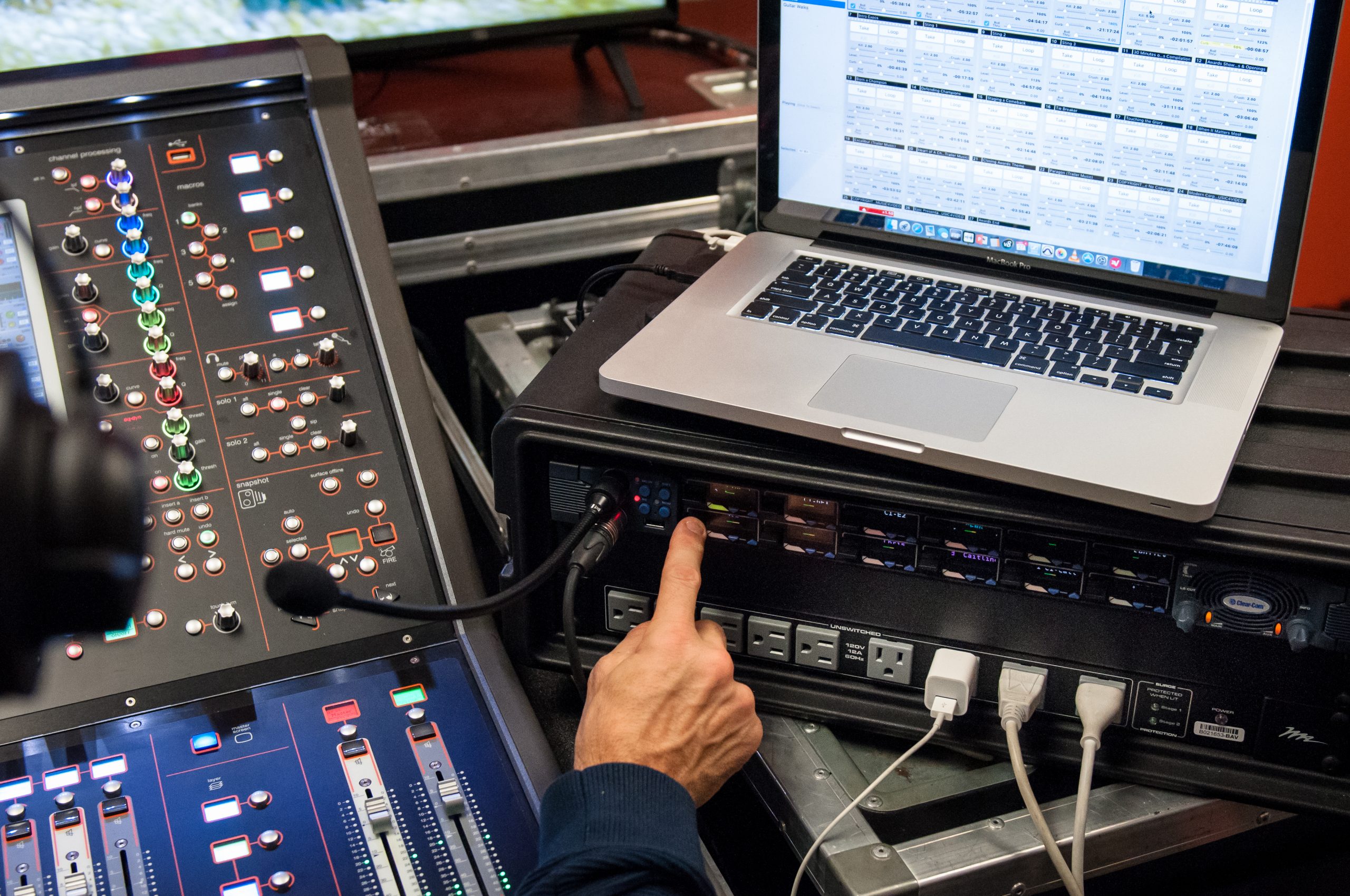 Additional Clear-Com products include an LQ-2W2, which acts as a bridge between the HelixNet Digital Partyline System and the Eclipse Matrix System, an LQ-R4W8 as a SIP Phone Bridge for the Eclipse, which provides 8 phone lines for less technically inclined producers to get into each control room’s Party Line, and a Dante-64 card for sending and receiving audio from the multitude of Dante enabled devices throughout the control rooms.