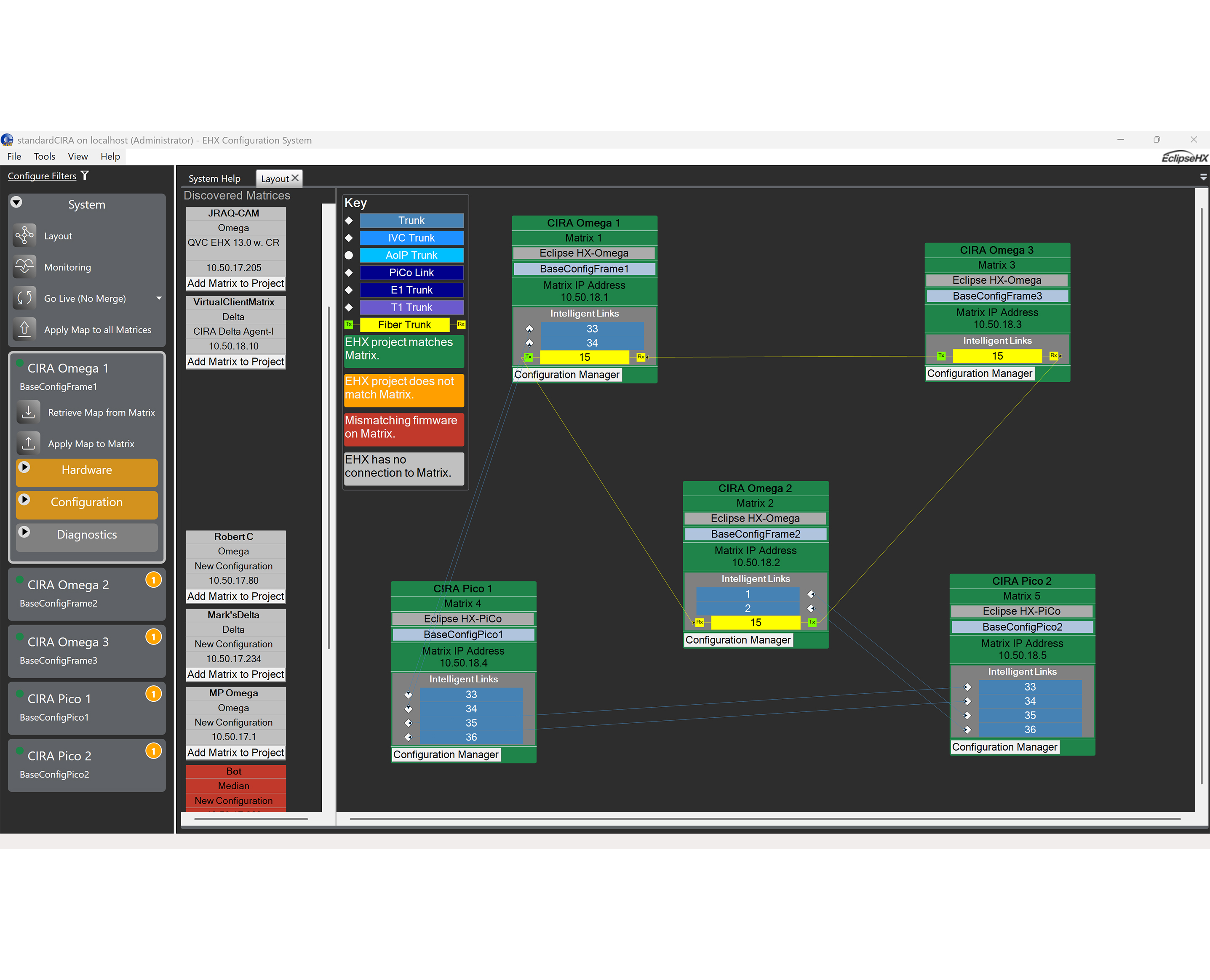 • Central configuration of a single Eclipse HX matrix or a complete network of intelligently linked Eclipse HX matrices