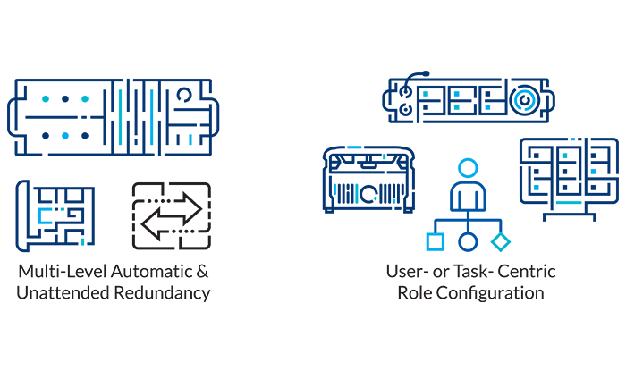 Eclipse HX systems feature multiple levels of redundancy for maximum reliability with fully automated and unattended failover. The frames include redundant system controllers, backplanes, and power supplies. E-IPA Interface Cards allow N+1 backup or mirroring of specified cards. All E-IPA, E-DANTE, and E-MADI cards feature redundant audio ports. Furthermore, virtualized Role configuration facilitates configuration redundancy, allowing user station configurations to be picked up anywhere in the system regardless of where it is connected.