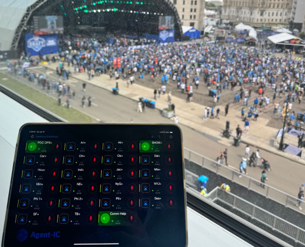 ALAMEDA, USA – July 9, 2024 –  Clear-Com® is proud to announce the successful deployment of its cutting-edge Gen-IC® Virtual Intercom and SkyPort™ Virtual System Management Platform at the major 2024 football draft event. This groundbreaking technology facilitated seamless communication for 36 at-home users and 20 remote draft picks across the globe, including countries such as Germany, Mexico, Nigeria, Ghana, the UK, Ireland, Australia, and Spain.