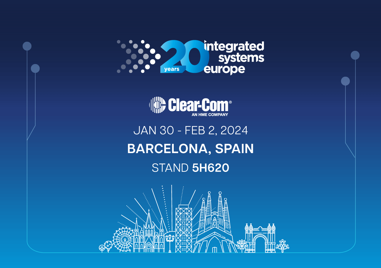 ALAMEDA, USA – January 4, 2024 – As a leader in professional voice communication solutions, Clear-Com® is set to make waves at ISE 2024 as it returns to the prestigious event, scheduled to take place in Barcelona from January 30 to February 2, 2024. Visitors to Clear-Com's stand, located in Hall 5, will have the opportunity to witness the unveiling of a new, cutting-edge intercom product as well as the latest updates to the company’s broad range of solutions for a myriad of applications across multiple industries including live events, installations, performance spaces, corporate AV, museums, theme parks and motorsports.