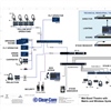 A Digital Matrix frame connects to panels, wireless/wired devices, and wall-mount speaker stations through multiple ports. The network supports 4-wire intercom directly with device ports, and 2-wire communications through interface modules.