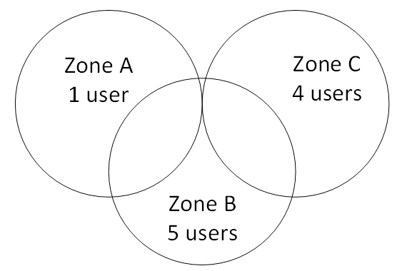 Adjust transceiver placement to get the best coverage. Coverage zones should be overlapped. Example coverage zones are shown below.
